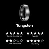 Tungsten is heavier, highly scratch-resistant, and boasts a polished, mirror-like finish, though it can crack under impact and isn’t resizable. Titanium, is lightweight, hypoallergenic, and more flexible, making it less prone to breaking but easier to scratch. Tungsten and titanium rings both offer durability and modern style, but they differ in key ways. The choice comes down to personal preference - tungsten for a weighty, pristine look or titanium for comfort and minimalism.