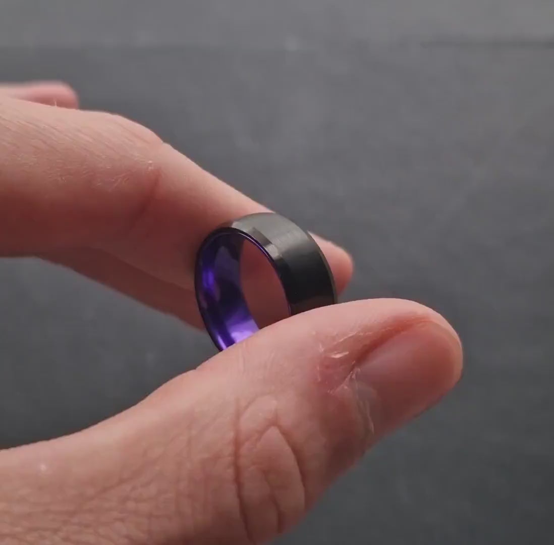 Black & Purple Ring – Brushed Black Tungsten Wedding Band