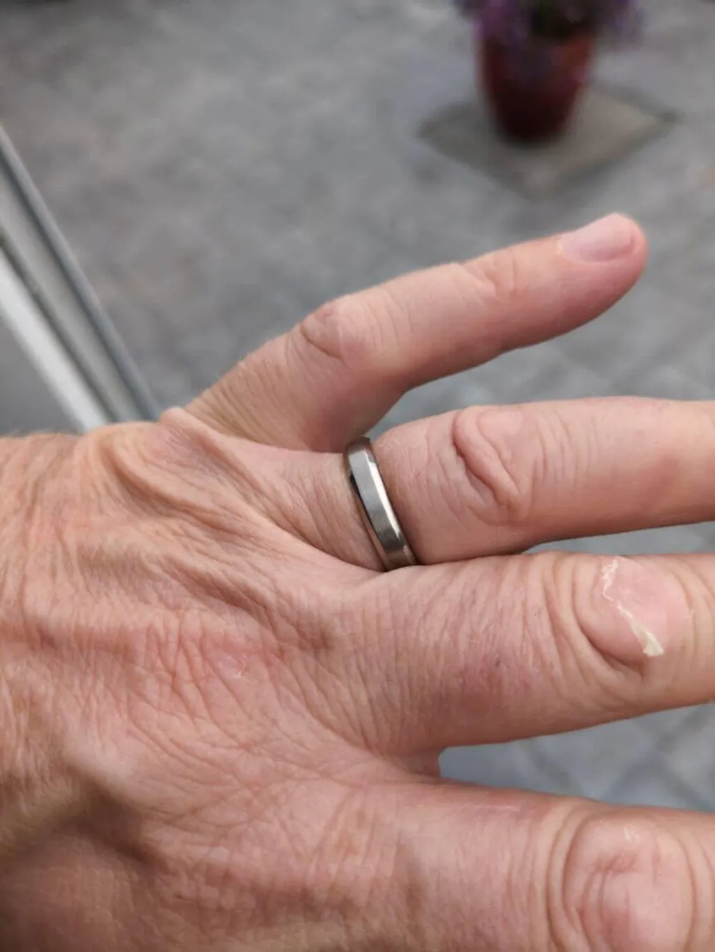 Titanium is renowned for its strength, scratch resistance and hypoallergenic properties, making it ideal for daily wear. The comfort fit interior ensures the ring slides on smoothly and sits comfortably throughout the day.